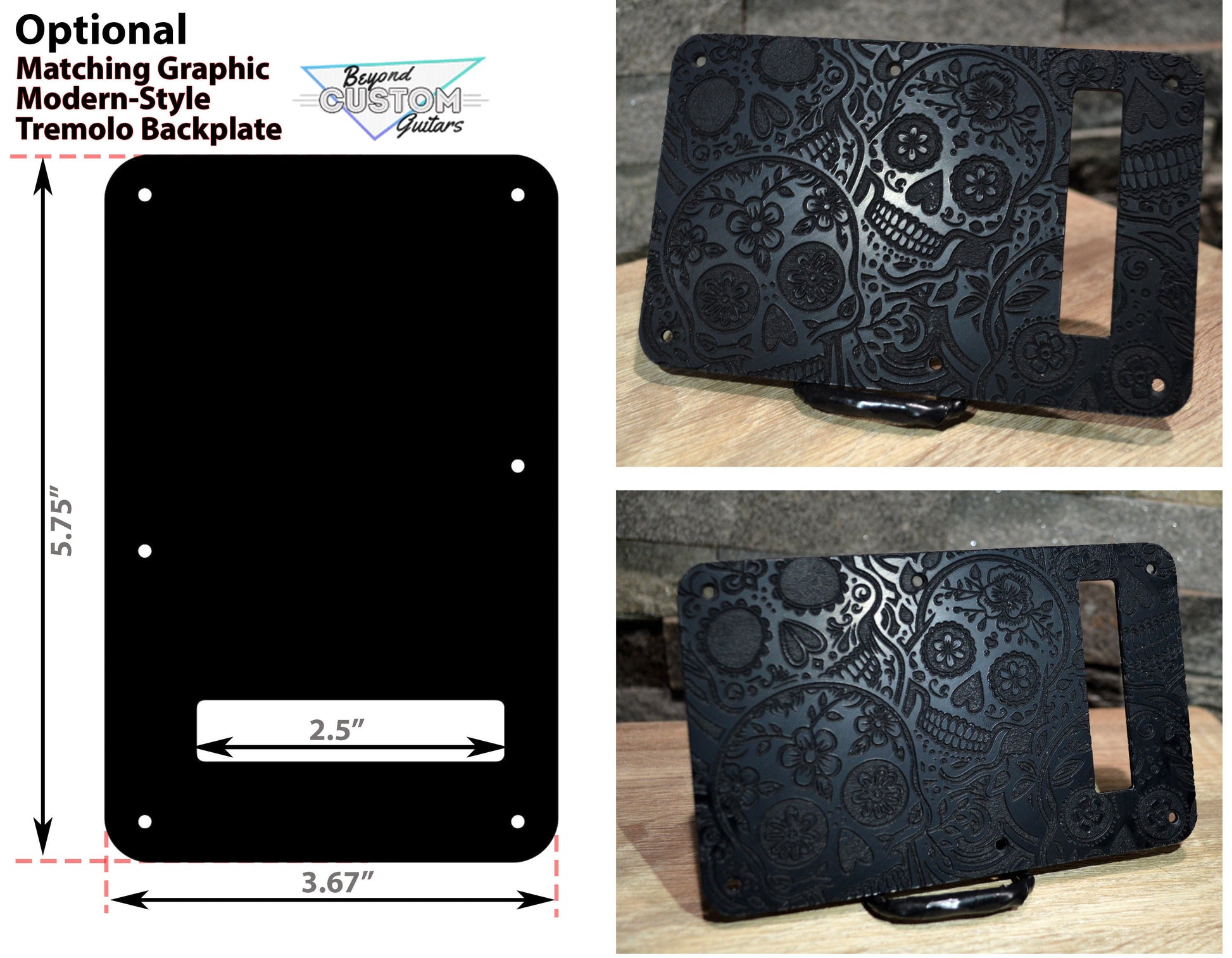 Custom sugar skulls textured standard Stratocaster pickguard from Beyond Custom Guitars.