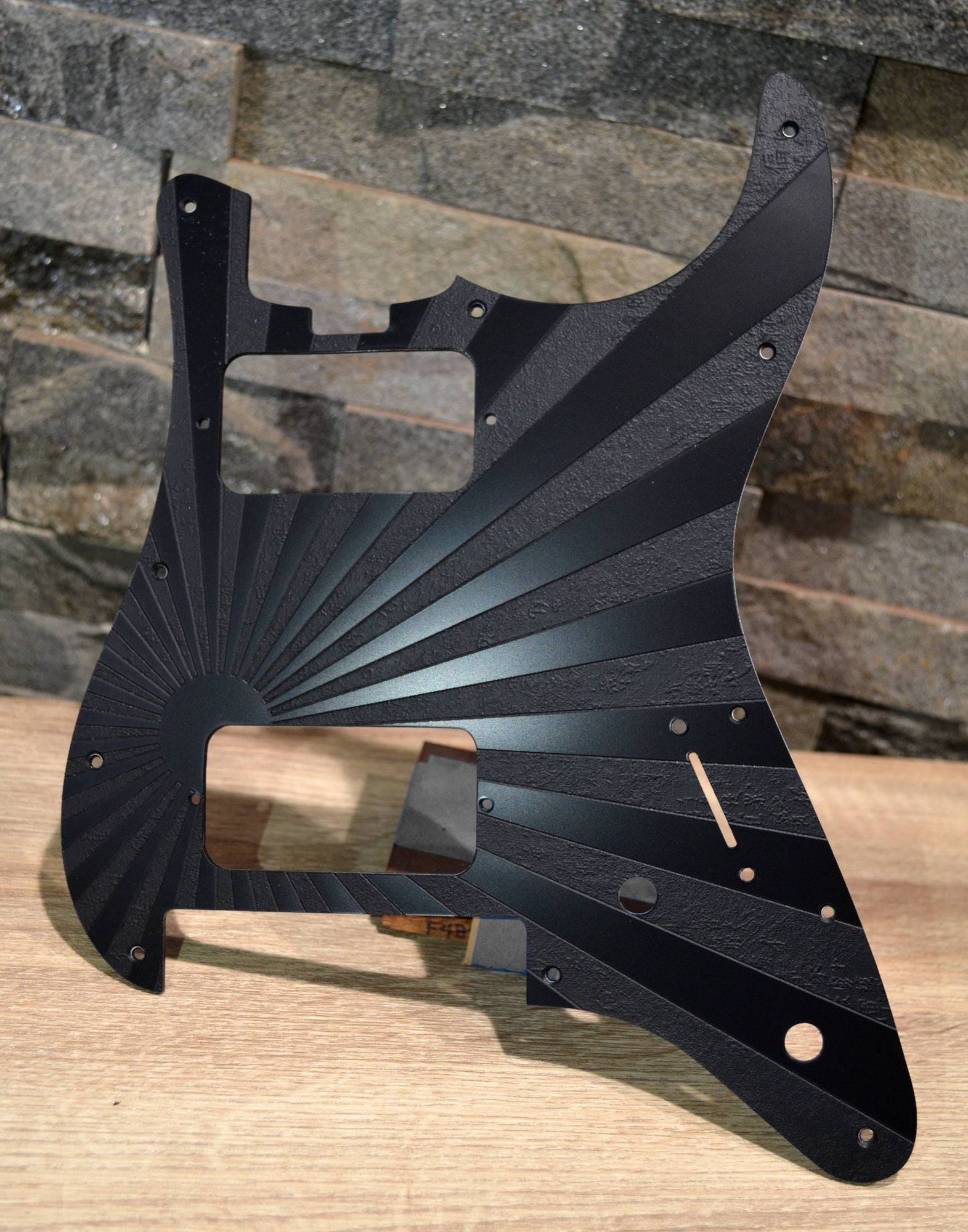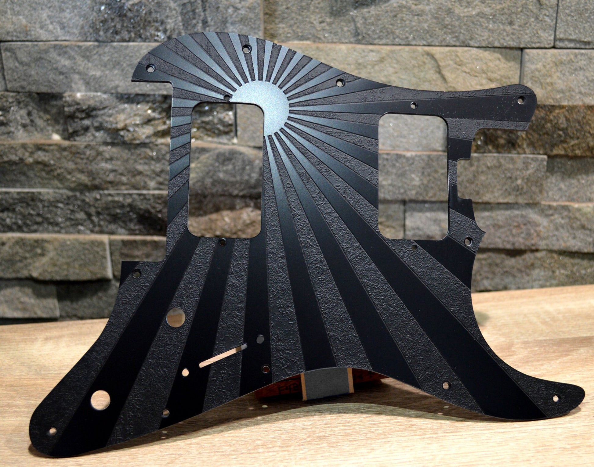 This is a custom Rising Sun textured pickguard for newer style Charvel Pro Mod - So Cal Style 1 Guitars with Floyd Rose.