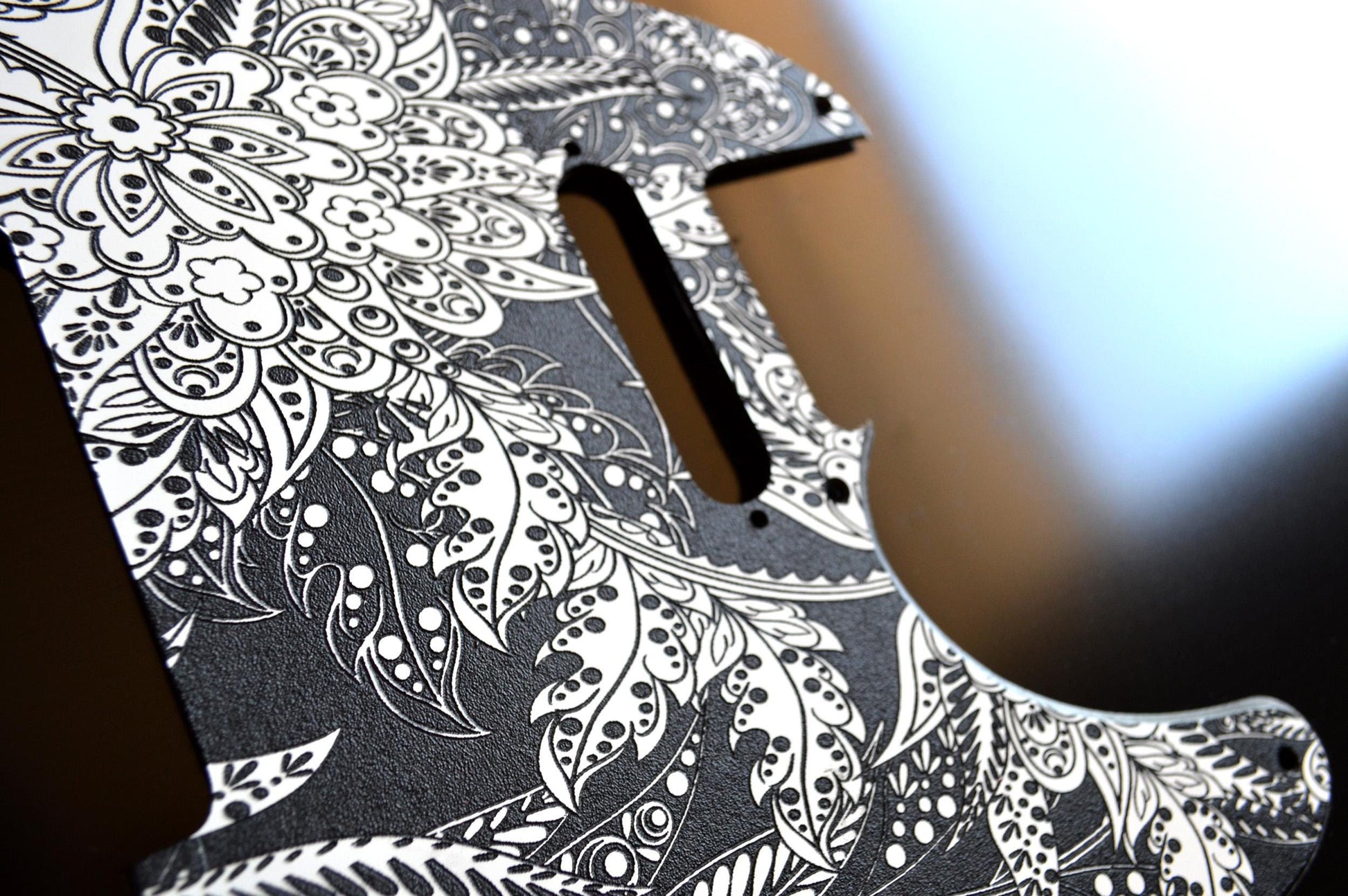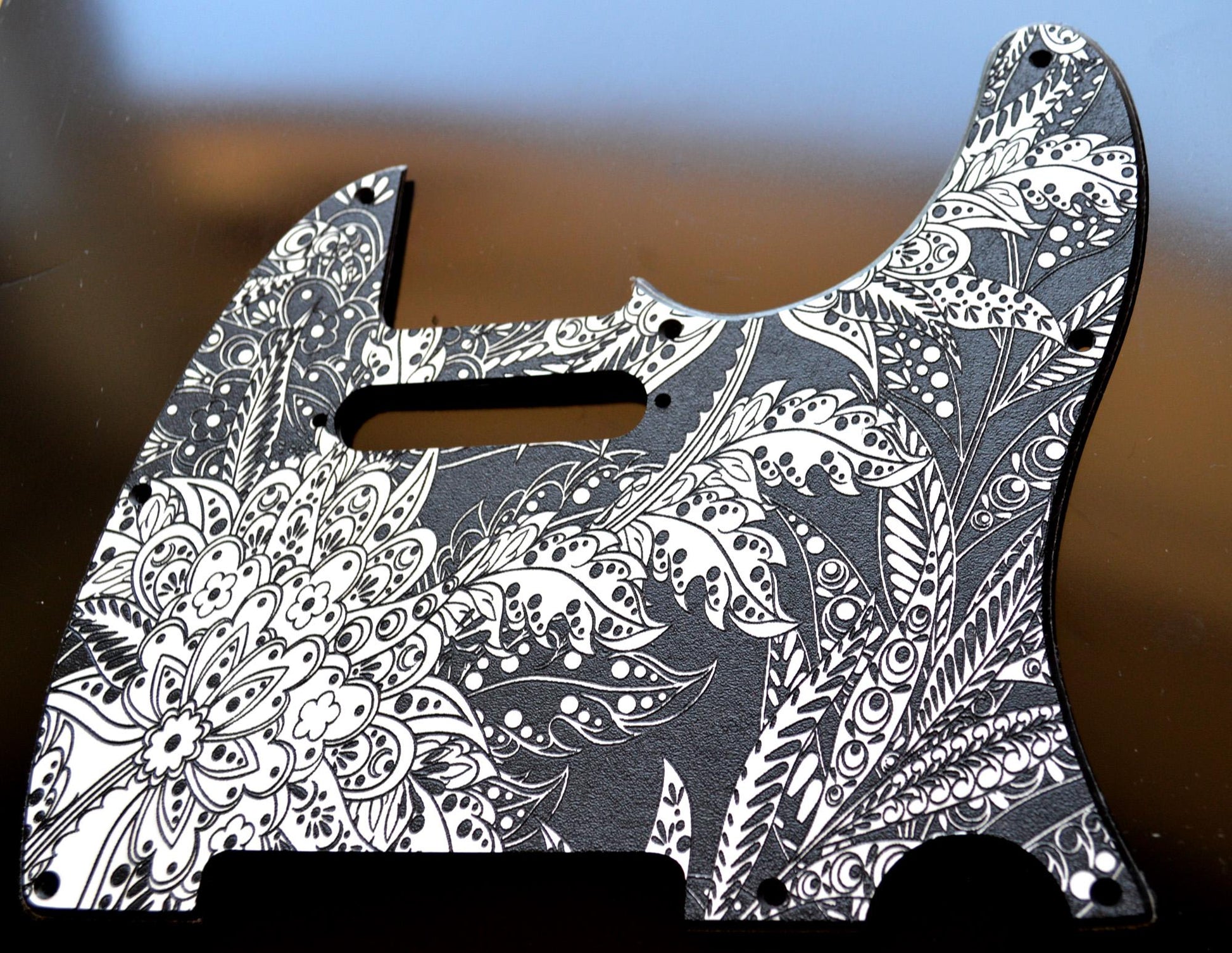 Custom Black and White Paisley Textured Pickguard - Fender Telecaster Parts