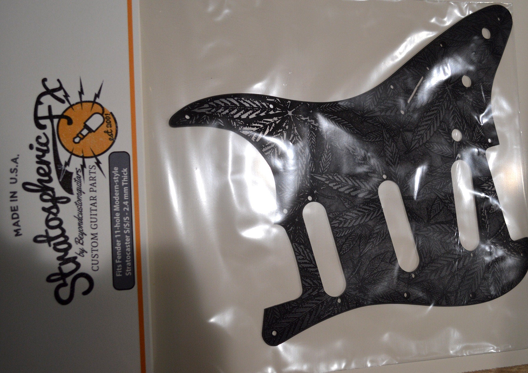 Custom Black Pot Leaf Textured Pickguard - Fender Stratocaster Parts USA Made