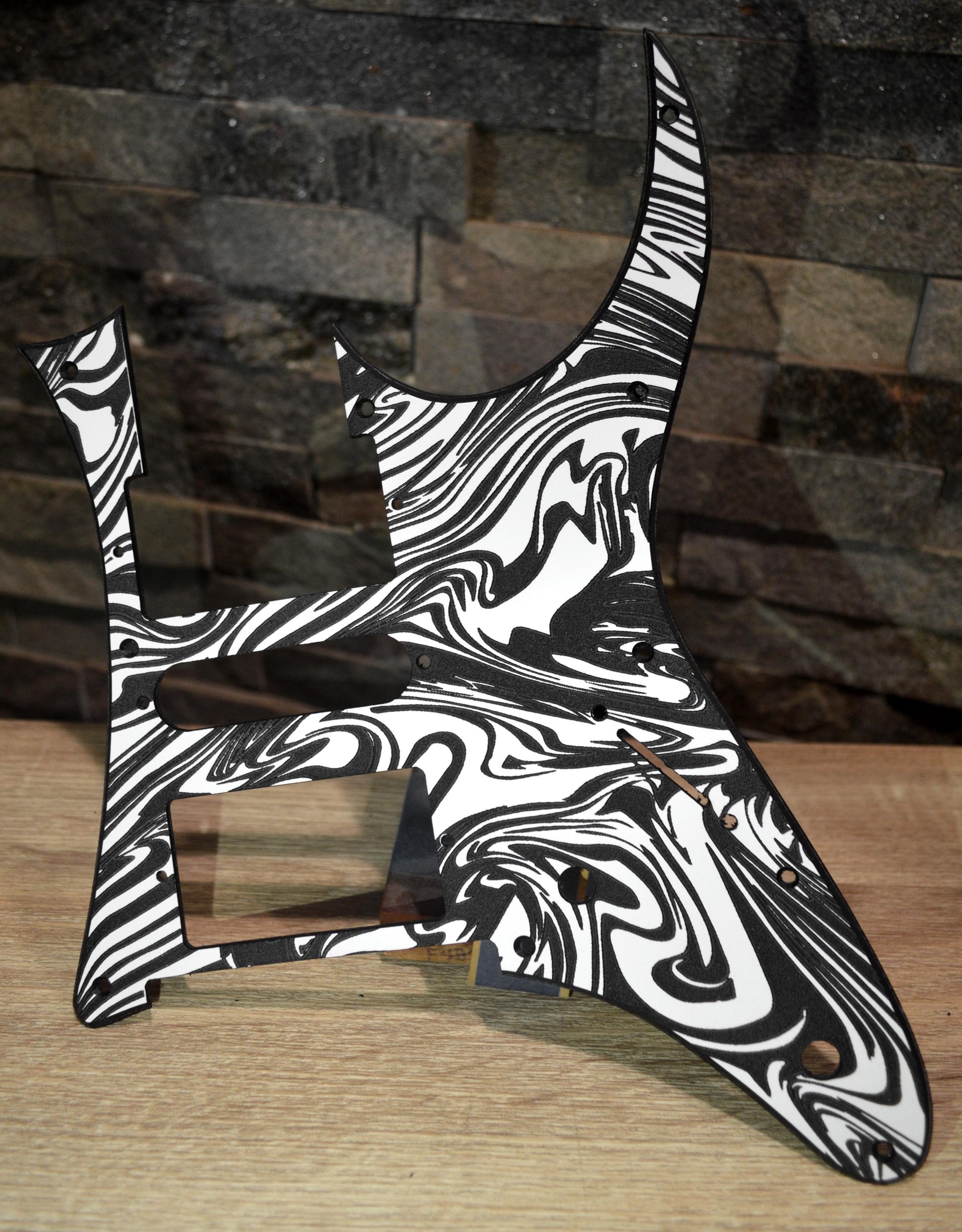Custom black and white swirl Textured Replacement pickguard for IBANEZ JEM or RG 550 series guitars. Designed as a replacement for Japanese made Ibanez guitars.