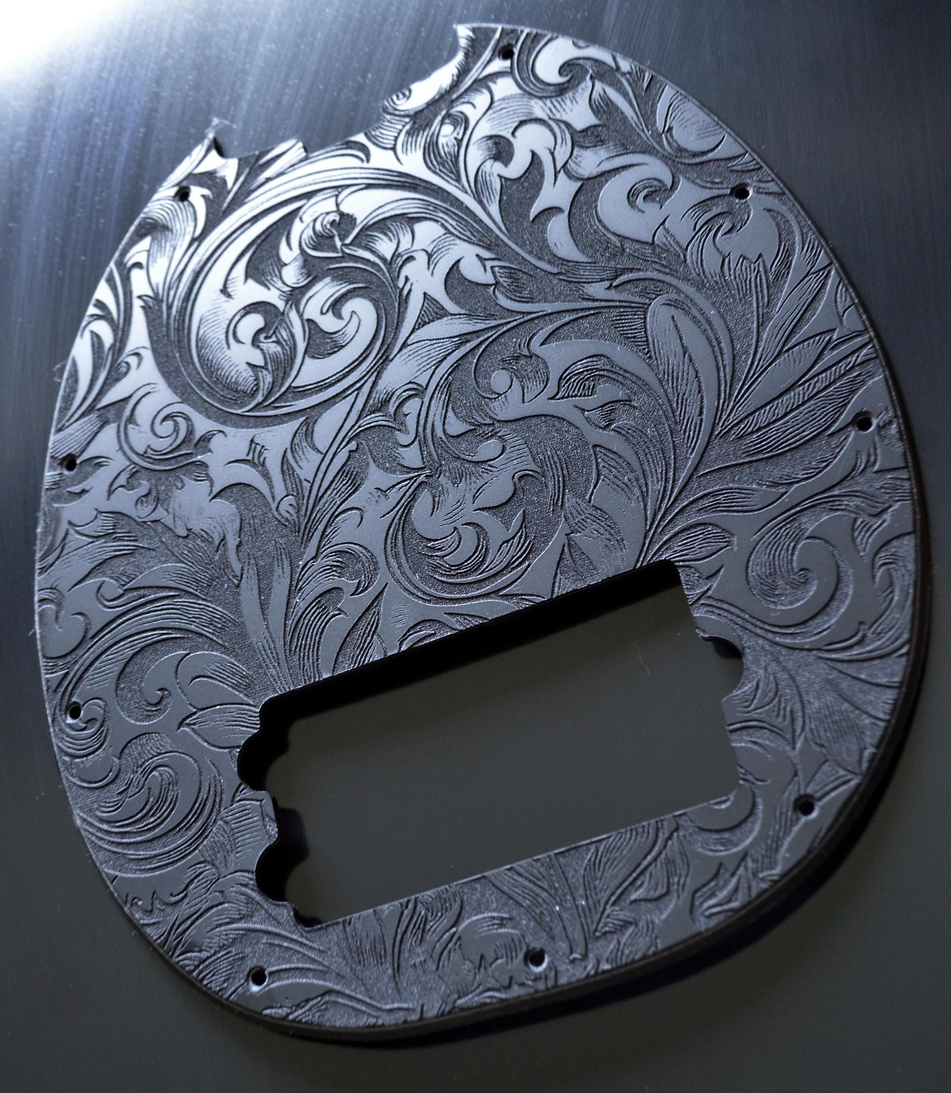 Give your prized Ernie Ball Music Man classic StingRay 4 bass a one-of-a-kind upgrade with a custom, hand-engraved pickguard. This isn't a mass-produced part; it's a piece of art designed to make your instrument truly stand out.