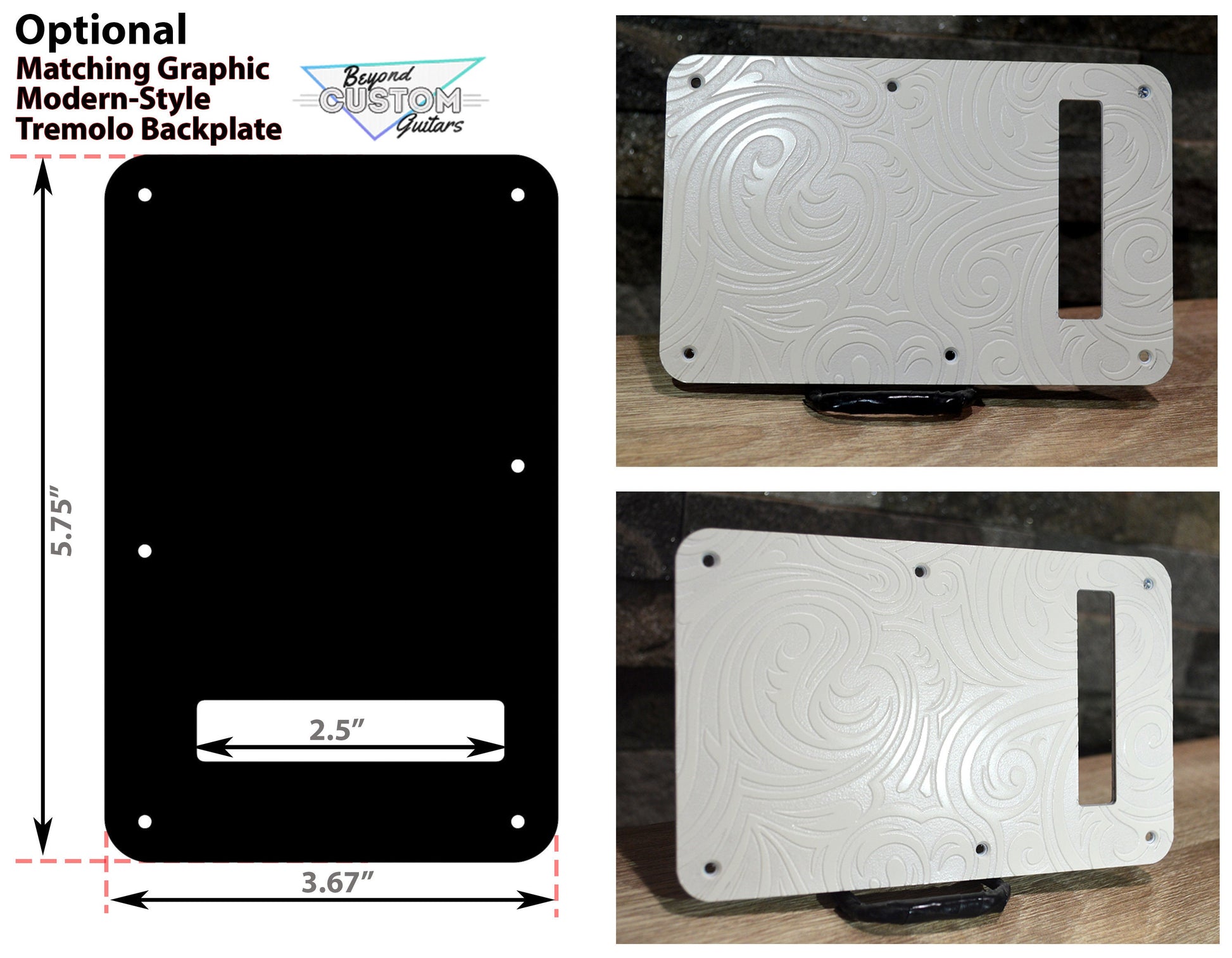 Custom ash white spiral textured standard Stratocaster pickguard from Beyond Custom Guitars.